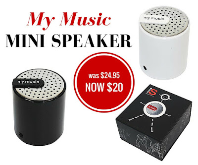 Posted on November 22, 2015 by Mr GiftWEEKLY SPECIAL: My Music Mini Speaker NOW $20 (was $24.95) A handy little speaker for travelling, camping, picnics, BBQs and summertime fun. Available in black or white. While stocks last.