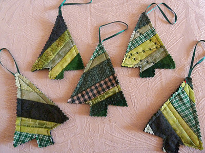 What a fun way to use up little scraps of fabric or ribbon (great for quilters!). Cutting the tree out with pinking shears gives the edge a lovely zig-zag look (and looks more like a Christmas tree), whilst ensuring the fabric doesn’t fray too much. We also love the stitching over the tree that looks like tinsel. These khaki green colours look great, but red, bright green and metallics would also look good too.