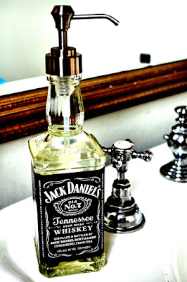 - The black and white label of this Jack Daniel’s bottle looks timeless and stylish, especially set against a white vanity. You could, however, use any other bottle to suit your bathroom decor. For example, a blue Bombay Sapphire bottle would look great in a blue bathroom, or a green Martini bottle would also make a great statement.
