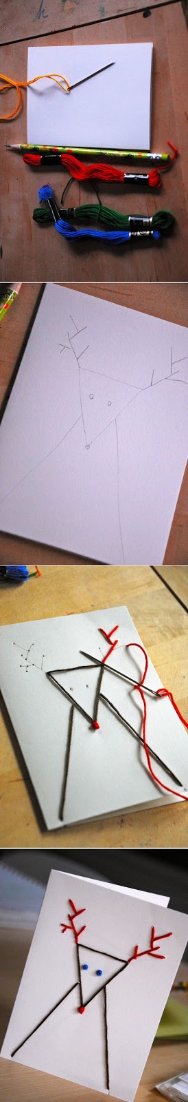 This is a really effective way of creating a simple handmade Christmas card. You don’t even have to be good at sewing – just mark up your card, thread your needle and away you go!